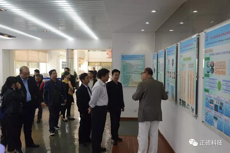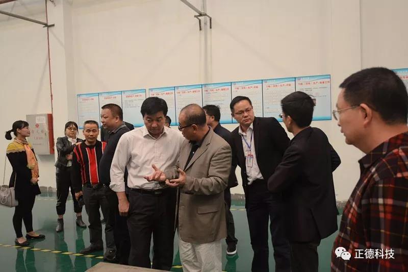 2018年4月8 日下午,茂名市委組織部副部長(zhǎng)梁田歡、茂名科技局黨組副書記陳軍一行及華南理工大學(xué)科技成果轉(zhuǎn)化處領(lǐng)導(dǎo)前來(lái)我司調(diào)研參觀;正德科技副董事長(zhǎng)魏海鷹先生熱情接待,副董事長(zhǎng)魏海鷹先生向客人簡(jiǎn)要介紹了正德公司發(fā)展現(xiàn)狀,并帶領(lǐng)客人參觀了展廳及生產(chǎn)線。